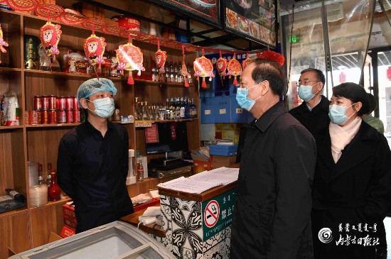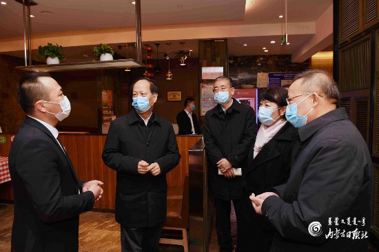 3月12日,自治區(qū)黨委書記、人大常委會主任石泰峰隨機走進一家臨街餐館,檢查防疫措施,詢問員工返崗和營業(yè)情況。 內(nèi)蒙古日報社融媒體記者 袁永紅 攝