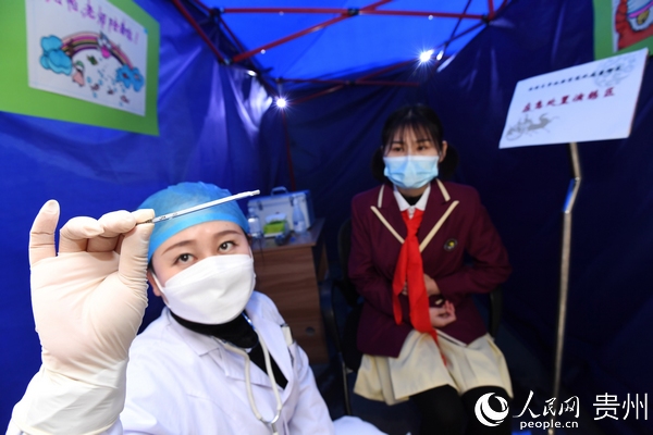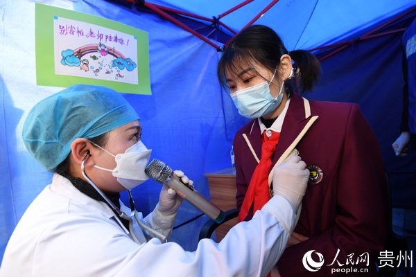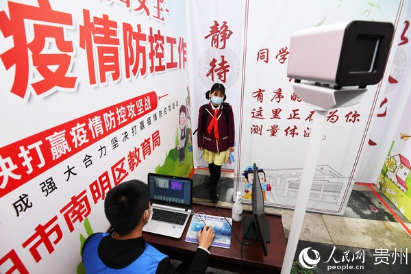 “學(xué)生進(jìn)校之前,要對學(xué)生和全體教職員工建起一人一檔的健康檔案,了解學(xué)生和他的家庭成員以及親密接觸人員的健康狀況,進(jìn)行逐一排查。到學(xué)生進(jìn)校的時(shí)候,對每一位學(xué)生,每一位教職員工都要進(jìn)行體溫檢測,還要讓他們掃‘貴州健康碼’,了解學(xué)生的行蹤和健康狀況,保障學(xué)生在學(xué)校里面健康學(xué)習(xí)。”宋旗學(xué)校校長陳孝勇說。