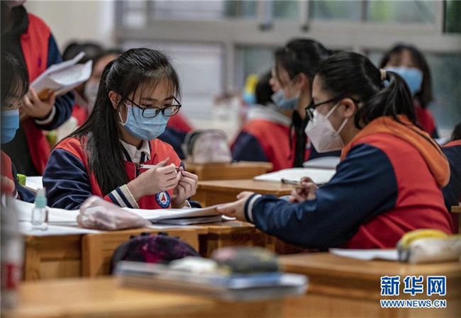 3月23日,昆明市第一中學(xué)高三年級(jí)住校生準(zhǔn)備進(jìn)教室上課。新華社記者 江文耀 攝