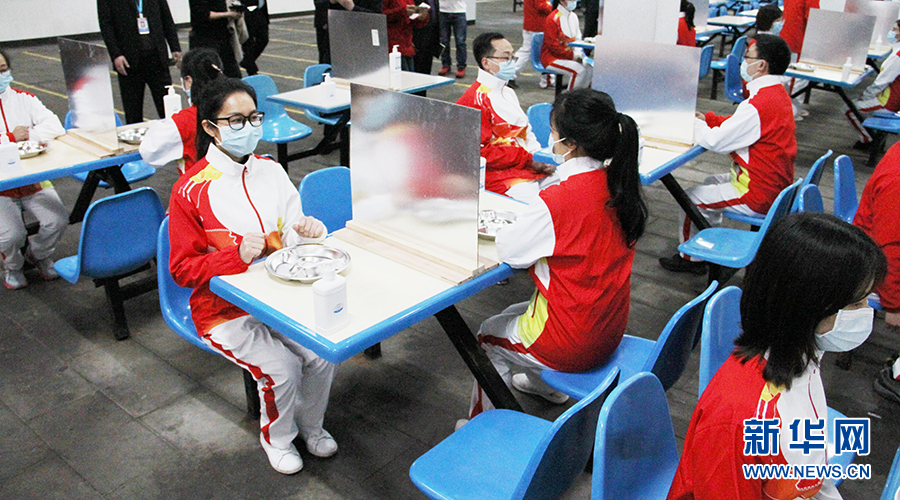 為了防止在就餐時(shí)交叉感染,重慶許多學(xué)校都對(duì)食堂設(shè)施進(jìn)行了相應(yīng)改造——譬如在就餐位上安裝隔板,以做到錯(cuò)時(shí)錯(cuò)峰分散用餐。圖為兩江育才中學(xué)演練食堂就餐環(huán)節(jié)。新華網(wǎng)發(fā)
