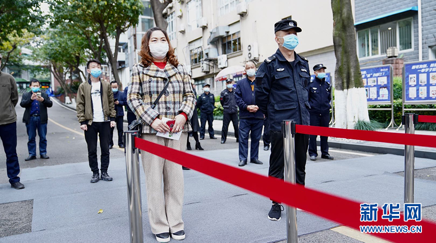 在重慶市第一中學(xué),學(xué)生返校時(shí)須由值班人員引導(dǎo)指揮,在校門外有序排隊(duì),相互間保持一米的距離,并從專用通道依次有序進(jìn)入。圖為學(xué)校老師演習(xí)進(jìn)校場(chǎng)景。新華網(wǎng)發(fā)
