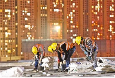 近日,在廣西柳州柳東新區(qū)國際會展中心三期項(xiàng)目工地,夜班工人在屋面作業(yè)。 黎寒池?cái)z(影像中國)