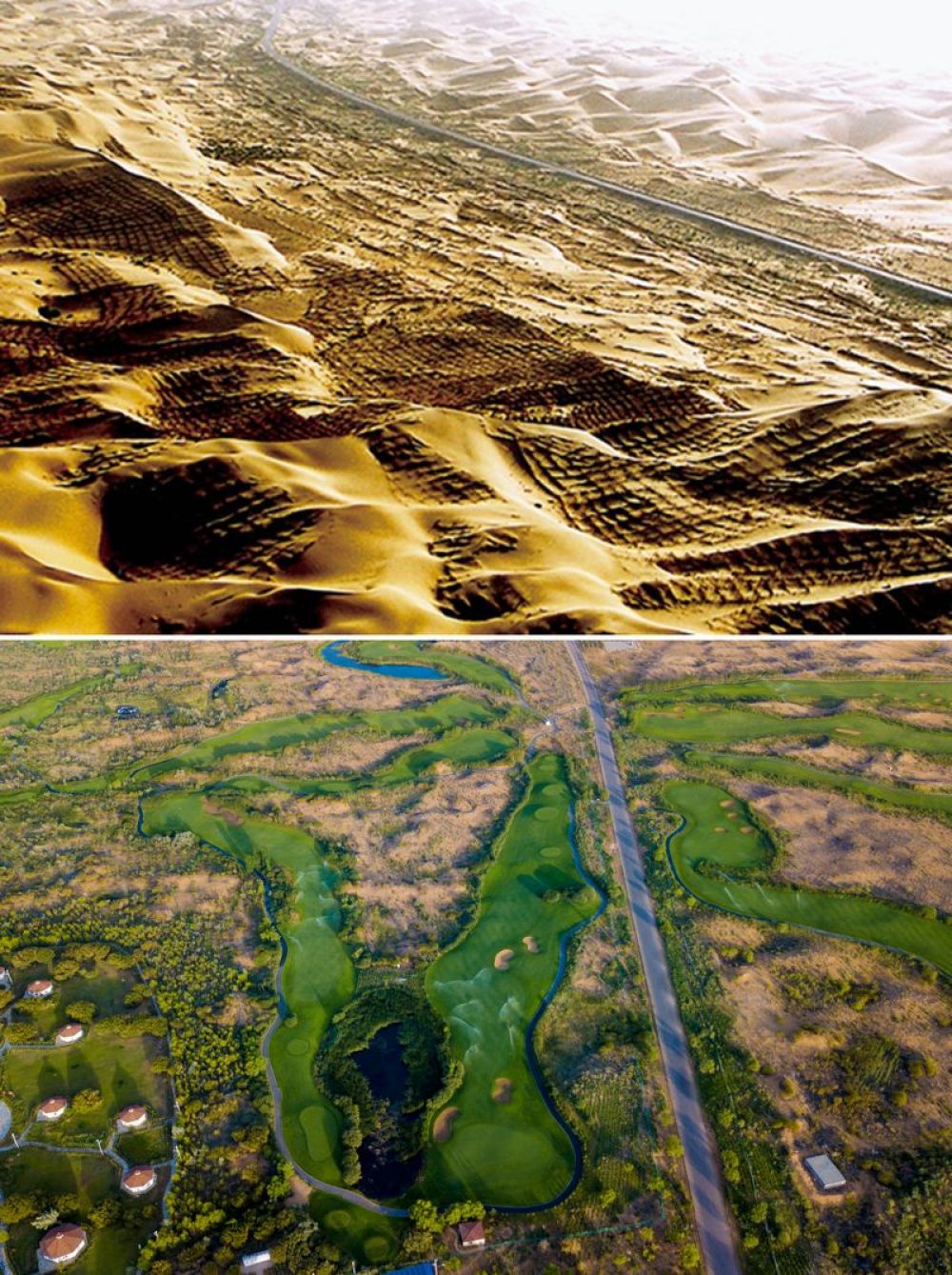 經(jīng)過(guò)30余年的艱苦治理,中國(guó)第七大沙漠——內(nèi)蒙古庫(kù)布其沙漠,從原是飛鳥難越的“死亡之海”,變?yōu)槿缃裆撤寰G谷交相輝映。