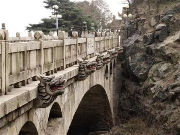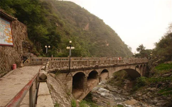 原潭側(cè)巖石上建有廟宇叫五龍宮,宮內(nèi)供有五位龍君,文化革命前殘垣還在,“文革”后徹底毀廢。由于山洪原因,潭逐漸被碎石填塞,今已不復(fù)存在。唯潭上的五龍橋及橋頭上的大型五龍彩色壁畫依然向游人訴說著五龍?zhí)睹利惖膫髡f。橋欄鐫刻的“五龍橋”三字是當(dāng)時任中共中央書記處書記的胡喬木同志所書。