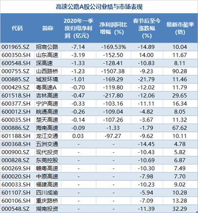 在疫情之下,交通企業(yè)普遍虧損。從高速公路企業(yè)來說,客運量驟減和免費政策的雙重夾擊之下,他們經歷了長達79天的“至暗時刻”。同花順數據顯示,A股高速公路板塊總計有21家上市公司。截至4月30日,共有16家發(fā)布了第一季度業(yè)績報告,其中有14家公司營收、凈利潤雙雙下滑。與此同時,還有高速公路概念股的同期普遍下跌。