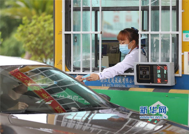 5月6日,貴州省銅仁市玉屏侗族自治縣滬昆高速玉屏收費站的收費員在收取過往車輛過路費。 交通運輸部4月28日發(fā)布關于恢復收費公路收費的公告,經國務院同意,自2020年5月6日零時起,經依法批準的收費公路恢復收費(含收費橋梁和隧道)。 新華社發(fā)(胡攀學 攝)