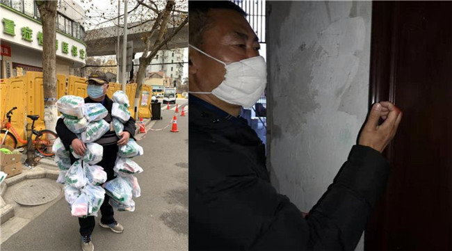 湖北武漢街頭邊,某社區(qū)網格員、被網友們親切稱為“藥袋哥”的豐楓把幾十個藥袋子串在一起掛在身上,照片被他人隨手拍下,感動無數網友。那天,他早上5點多就守在了藥房門口,12個小時后終于拿齊了近100份藥。四川攀枝花的巷弄里,57歲的李松江每天走訪200多戶,其中多是老年住戶。“要有耐心,敲門的力氣要大一點,這樣老人才聽得見。”每天敲門上千次后,他的指關節(jié)紅腫破皮……