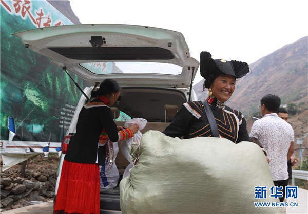 5月12日,四川省昭覺縣阿土列爾村第一批26戶貧困戶陸續(xù)下山準備搬新家。新華社記者江宏景攝