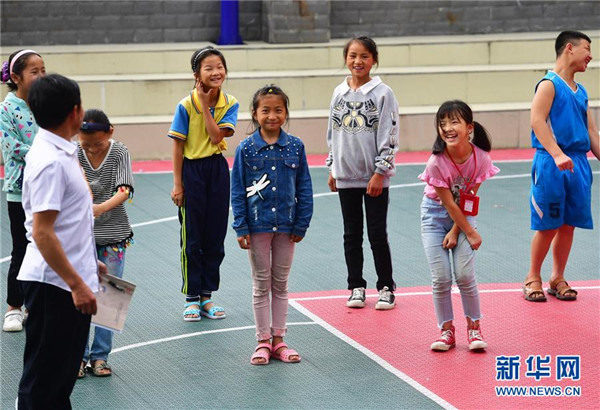 在廣西融水苗族自治縣桿洞鄉(xiāng)黨鳩小學(xué),師生們在進(jìn)行戶外游戲(5月13日攝)。新華社記者黃孝邦攝