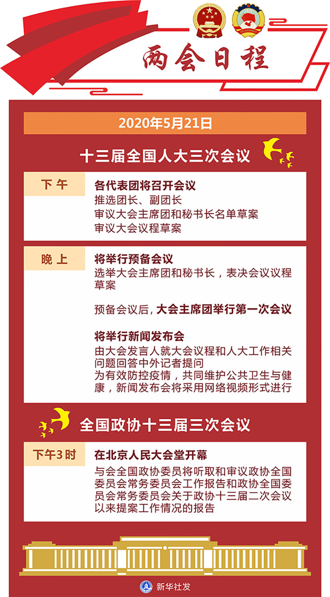 原標(biāo)題:5月21日:全國政協(xié)十三屆三次會(huì)議下午3時(shí)開幕 十三屆全國人大三次會(huì)議舉行預(yù)備會(huì)議