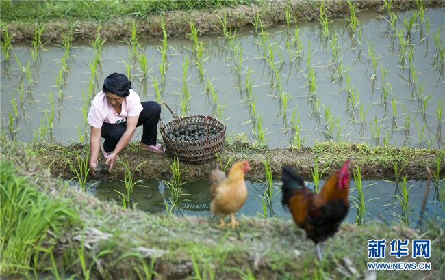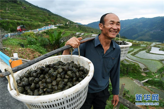 在田螺養(yǎng)殖過程中,采取“公司+合作社+農(nóng)戶”的模式,政府統(tǒng)一向龍頭公司采購種螺交給合作社,合作社根據(jù)貧困戶水田規(guī)模和意愿發(fā)放種螺,同時公司技術(shù)人員入村開展養(yǎng)殖技術(shù)培訓,田螺收獲時再由合作社對接種螺公司統(tǒng)一上門按保底價回收,解除了貧困戶養(yǎng)殖和銷售的后顧之憂,進一步拓寬山區(qū)群眾脫貧增收渠道。 新華社記者 楊文斌 攝