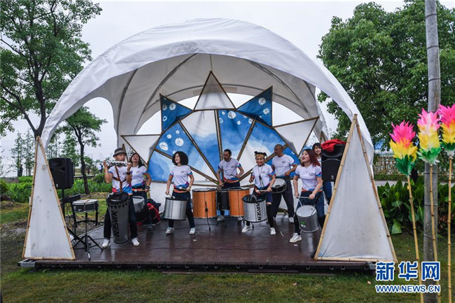 這是石淙花海內(nèi)的音樂表演(5月30日攝)。新華社記者 徐昱 攝