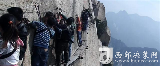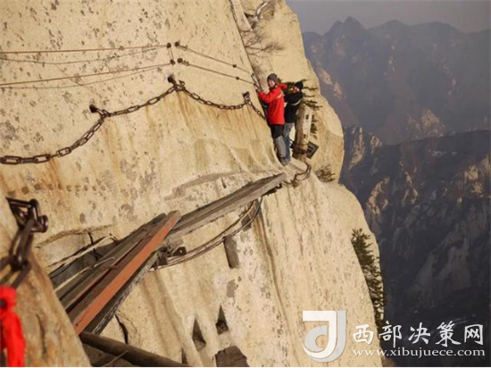 長(zhǎng)空棧道位于華山南峰東側(cè)山腰,是華山派第一代宗師元代高道賀志真為遠(yuǎn)離塵世靜修成仙,在萬(wàn)仞絕壁上鑲嵌石釘搭木椽而筑。棧道上下皆是懸崖絕壁,鐵索橫懸,由條石搭成尺許路面,下由石柱固定,游人至此,面壁貼腹,屏氣挪步,被喻為“華山第一天險(xiǎn)”。不過(guò)經(jīng)歷了新冠病毒的考驗(yàn),真的不知道這對(duì)于偉大的醫(yī)護(hù)人員來(lái)說(shuō)算不算險(xiǎn)。