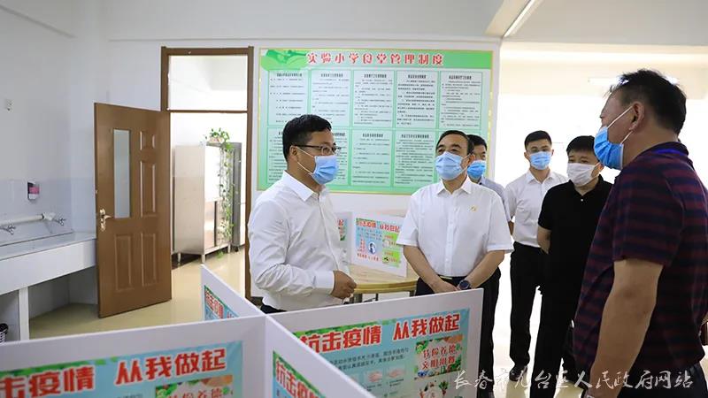 6月16日,長春市九臺區(qū)區(qū)長宋長者帶領(lǐng)區(qū)政府辦、教育局、衛(wèi)健局、市場監(jiān)督管理局等單位負(fù)責(zé)同志深入到區(qū)實(shí)驗(yàn)小學(xué),實(shí)地調(diào)研小學(xué)開學(xué)疫情防控工作。