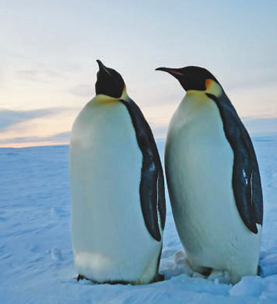5月26日,隊(duì)員在普里茲灣海冰觀測(cè)途中偶遇的企鵝。孫曉宇攝