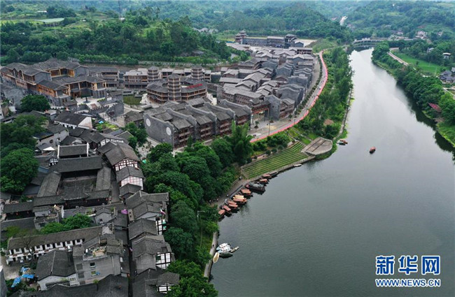 6月26日拍攝的萬(wàn)靈古鎮(zhèn)(無(wú)人機(jī)照片)。 新華社記者 王全超 攝