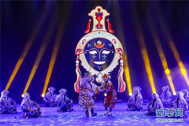 四川省阿壩藏族羌族自治州阿壩縣“蓮寶葉則”演藝公司演職人員在表演傳統(tǒng)曲種《折嘎》(6月14日攝)。折嘎是古老的曲種,如今被搬上舞臺,并在演唱中加入了傳遞吉祥、贊頌新人新事新風(fēng)尚的內(nèi)容。這些演職人員中不少是從當(dāng)?shù)剜l(xiāng)村里來的年輕人,經(jīng)過培訓(xùn)合格后成為演員,通過表演獲得穩(wěn)定的收入。新華社記者 沈伯韓 攝