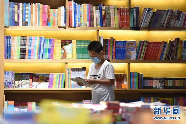 7月5日,一名小朋友在河北省定州市新華書店挑選圖書。新華社記者 朱旭東 攝
