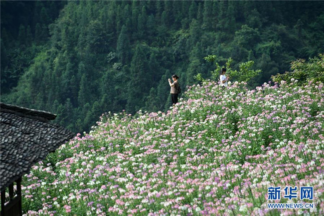 7月6日拍攝的龍勝各族自治縣泗水鄉(xiāng)周家村布尼梯田盛開的鮮花。