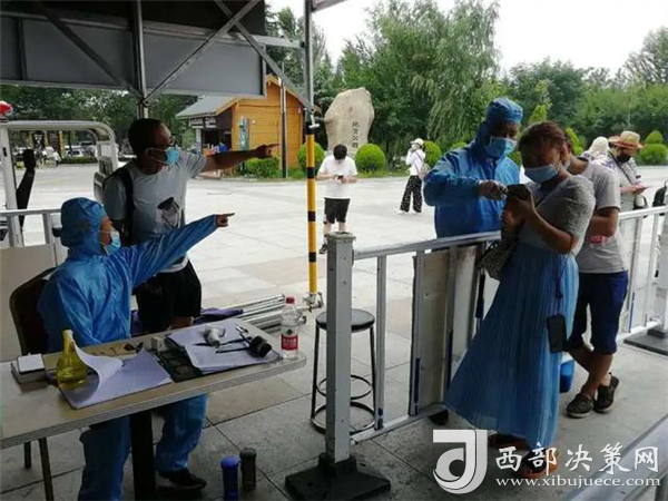 在游客入口處,工作人員正在逐一測量游客體溫、查驗(yàn)健康碼,沒有健康碼的,他們要幫助游客注冊并認(rèn)真登記。經(jīng)檢驗(yàn),一切正常的,恭請入園;體溫不正常的,進(jìn)一步篩查甄別;健康碼是黃色的,勸返;健康碼是紅色的,隔離。