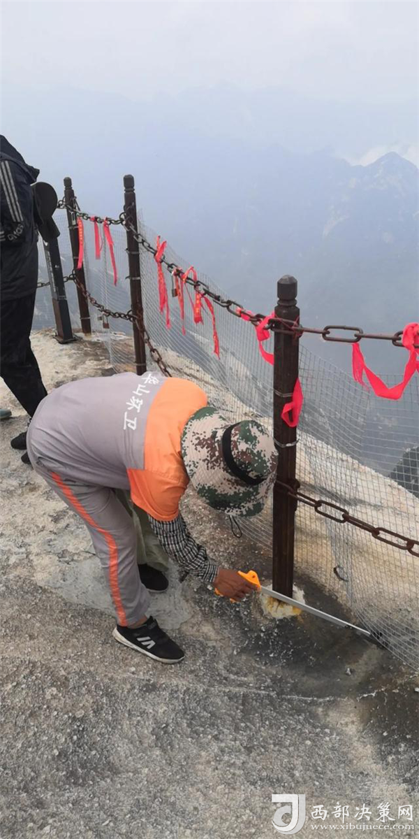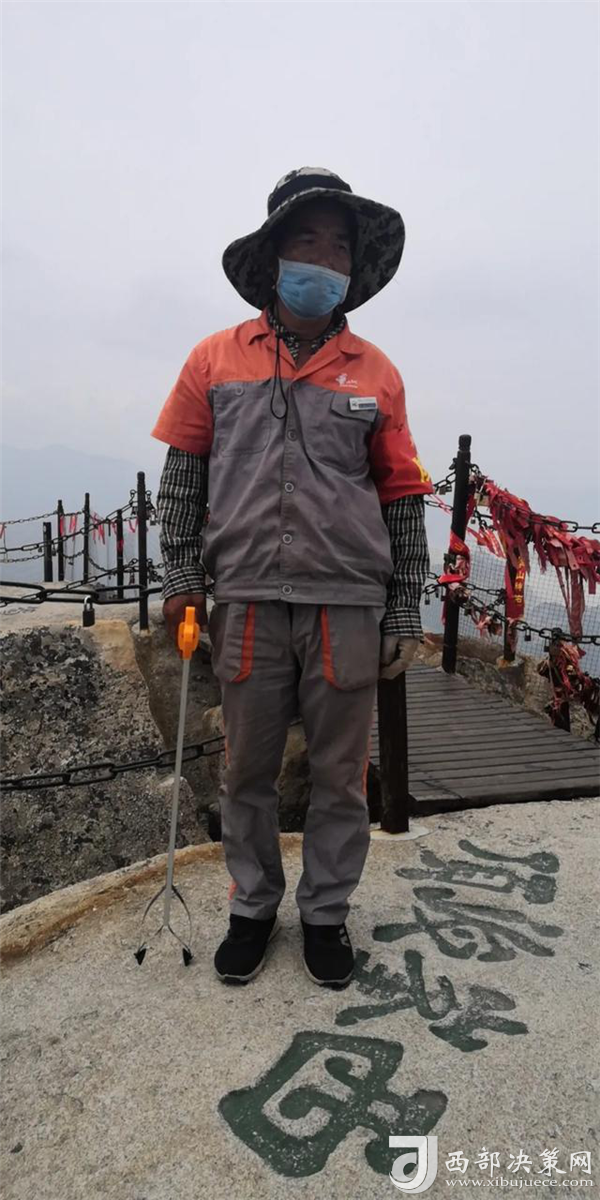 楊群社是景區(qū)一名環(huán)衛(wèi)工,負(fù)責(zé)華山西峰頂區(qū)域的衛(wèi)生保潔工作。為了給游客創(chuàng)造一個(gè)干凈整潔的游覽環(huán)境,熾熱的陽光下,楊群社在自己的區(qū)域內(nèi)不停地來回?fù)焓袄?/div>