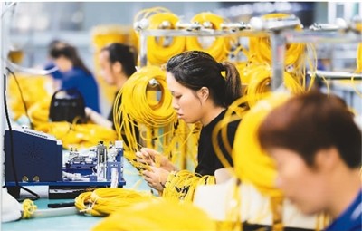 今年以來(lái),安徽省淮北市加快培育戰(zhàn)新產(chǎn)業(yè)鏈,提升戰(zhàn)新產(chǎn)業(yè)整體競(jìng)爭(zhēng)力,使戰(zhàn)新產(chǎn)業(yè)成為經(jīng)濟(jì)增長(zhǎng)新引擎。圖為淮北市濉溪經(jīng)濟(jì)開(kāi)發(fā)區(qū)內(nèi)的一家光通信技術(shù)企業(yè)的工人在生產(chǎn)車(chē)間加工光通信產(chǎn)品。萬(wàn)善朝攝(人民視覺(jué))