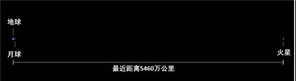 ▲最近時(shí)火星和地球的距離相比于地月距離的比例。來源:果殼