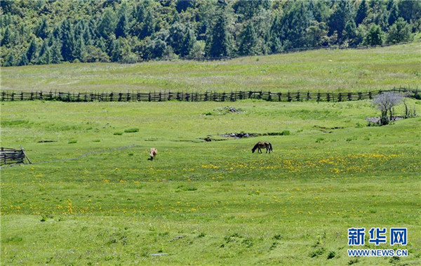 魯朗旅游小鎮(zhèn)的牧場(7月26日攝)。新華社記者張汝鋒攝