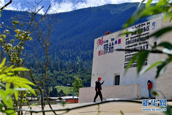 魯朗旅游小鎮(zhèn)農(nóng)牧民向游客招手致意(7月26日攝)。新華社記者張汝鋒攝