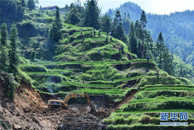 施工機械在烏英苗寨產(chǎn)業(yè)路工地作業(yè)(7月29日攝)。新華社記者 黃孝邦 攝