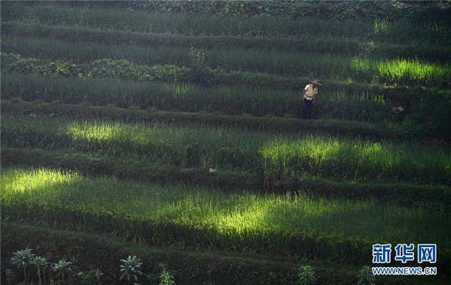 在烏英苗寨,村民潘培軍在田間除草(8月1日攝)。 新華社記者 黃孝邦 攝