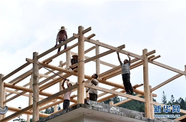 在烏英苗寨教學點,工人在改造教學樓(6月13日攝)。 新華社記者 黃孝邦 攝