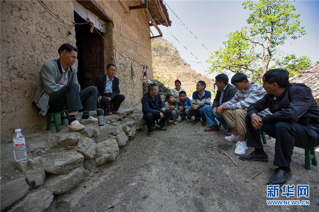 搬遷當(dāng)天,掛鉤幫扶干部和鄉(xiāng)鄰們上門道賀,掛鉤幫扶干部希望李本艷的父母——李守朝和陶大煥,能聽從安排、努力工作、勤勞致富,給孩子一個幸福的未來(攝于4月2日)。新華網(wǎng)發(fā)(鮑禹 攝)
