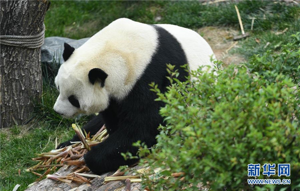 8月16日,大熊貓“和興”在西寧熊貓館內(nèi)吃竹子。青海省西寧熊貓館的四只大熊貓已經(jīng)在西寧生活了一年多,在工作人員的悉心照顧下,已經(jīng)適應(yīng)了青藏高原的氣候,身體各項(xiàng)指標(biāo)正常。新華社記者薛玉斌攝