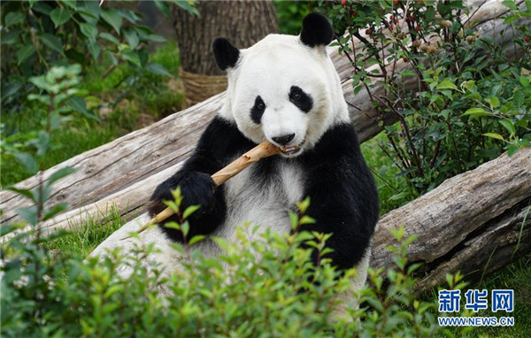 8月16日,大熊貓“雙欣”在西寧熊貓館內(nèi)吃竹子。青海省西寧熊貓館的四只大熊貓已經(jīng)在西寧生活了一年多,在工作人員的悉心照顧下,已經(jīng)適應(yīng)了青藏高原的氣候,身體各項(xiàng)指標(biāo)正常。新華社記者薛玉斌攝
