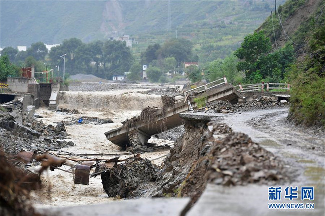 這是舟曲縣部分損毀道路和橋梁(8月23日攝)。 新華社記者 陳斌 攝