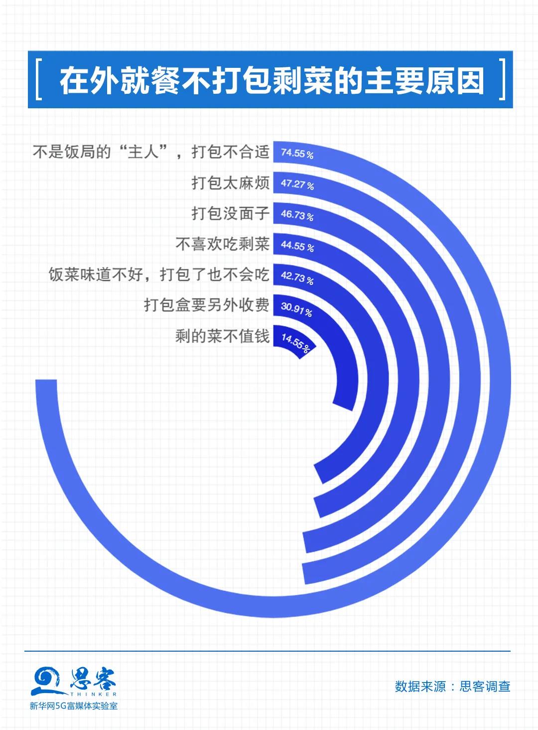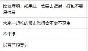 打包不合適、太麻煩、沒面子,這些是受訪者認(rèn)為在外就餐不愿打包剩菜的主要原因。“我不是宴會的主辦者,我打包不合適,好像我占便宜似的”“同桌的人一起夾過的菜,打包不衛(wèi)生”“穿著西裝打著領(lǐng)帶,手上拿著打包盒很奇怪”“中午食堂的剩菜又沒有打包盒裝,下午又沒地方放,沒人會打包帶走”,這樣的受訪者留言在后臺還有不少。