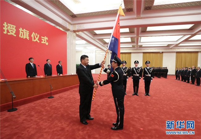 習(xí)近平向中國人民警察隊(duì)伍授旗并致訓(xùn)詞強(qiáng)調(diào) 對黨忠誠服務(wù)人民執(zhí)法公正紀(jì)律嚴(yán)明 堅(jiān)決完成黨和人民賦予的使命任務(wù) 王滬寧韓正出席