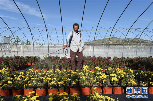 在定西市安定區(qū)魯家溝鎮(zhèn)將臺村,陳瑞福在花卉育苗基地里忙碌(9月2日攝)。 新華社記者 范培珅 攝