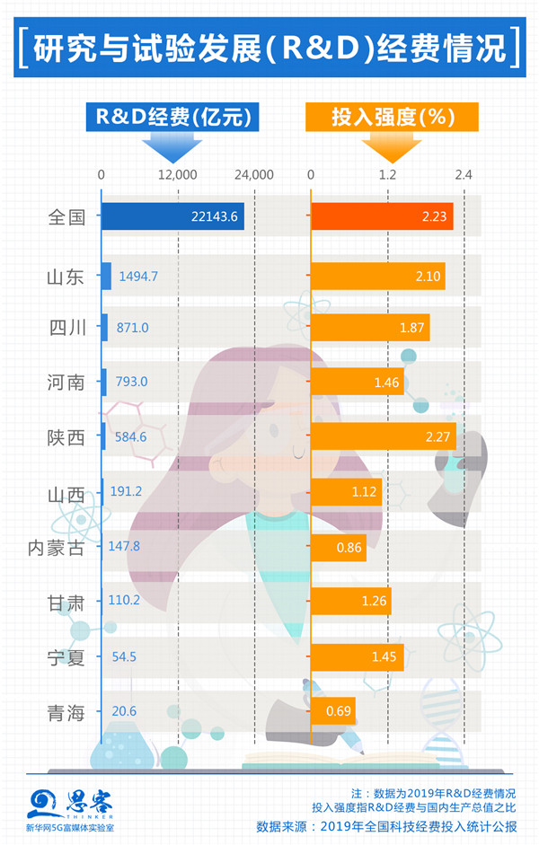 同東部沿海地區(qū)、南方省份相比,黃河流域創(chuàng)新競(jìng)爭(zhēng)壓力巨大,創(chuàng)新要素“孔雀東南飛”的趨勢(shì)嚴(yán)峻。2019年,九省區(qū)內(nèi)只有陜西的R&D經(jīng)費(fèi)投入強(qiáng)度高于全國(guó)平均水平。高端人才、技術(shù)勞動(dòng)力、產(chǎn)業(yè)資本等關(guān)鍵要素外流態(tài)勢(shì)仍在持續(xù),因此黃河流域在新舊動(dòng)能轉(zhuǎn)換上面臨困境。