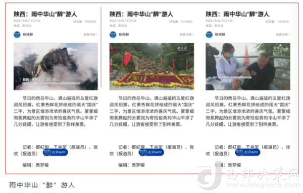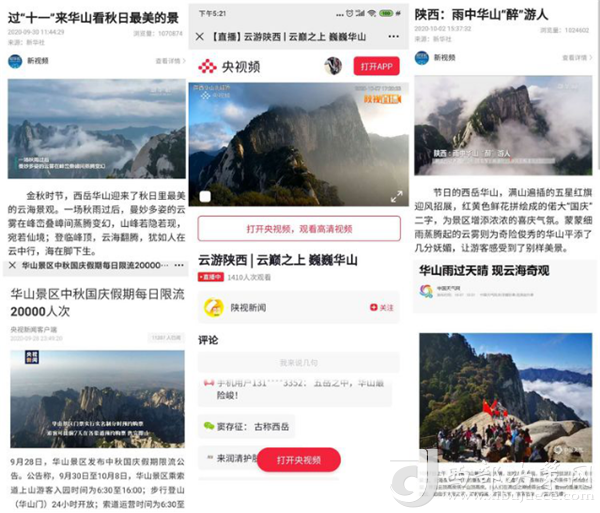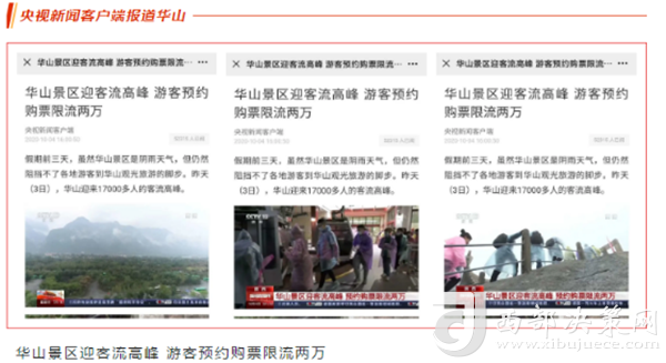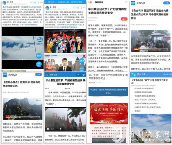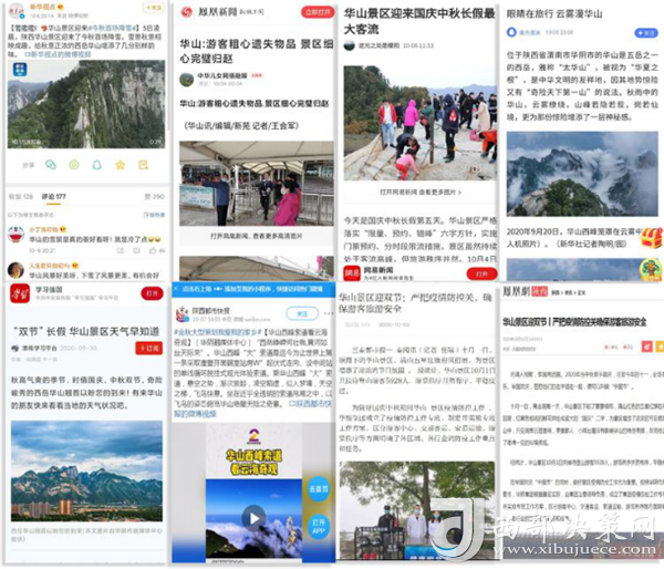 度節(jié)期間,通過央視cctv2【天下財經(jīng)】、cctv4、cctv13【新聞30分】、cctv13【新聞直播間】、央視網(wǎng)【國慶假期·出游】、央視網(wǎng)學(xué)習(xí)強(qiáng)國、央視新聞客戶端、新華社等國家級媒體對景區(qū)度節(jié)工作、游覽秩序、特色服務(wù)等方面進(jìn)行轟炸式報道;聯(lián)合陜西日報、陜西電視臺、渭南日報、渭南電視臺、三秦都市報、陜西旅游資訊、騰訊網(wǎng)、新浪網(wǎng)、網(wǎng)易陜西、鳳凰陜西等30余家主流媒體對景區(qū)度節(jié)期間各項工作及實時風(fēng)景進(jìn)行跟蹤報道,共計發(fā)布各類宣傳稿件239篇,全面提升景區(qū)旅游熱度。