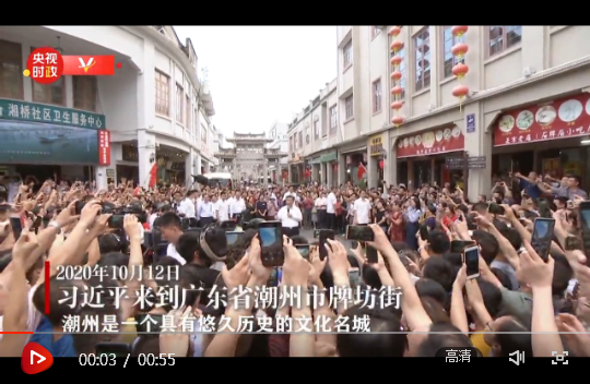 10月12日下午,正在廣東考察的習(xí)近平總書記來到潮州古城,看商鋪、問物價(jià),同當(dāng)?shù)厝罕娪H切交流,了解歷史文化街區(qū)保護(hù)和復(fù)商復(fù)市等情況。
