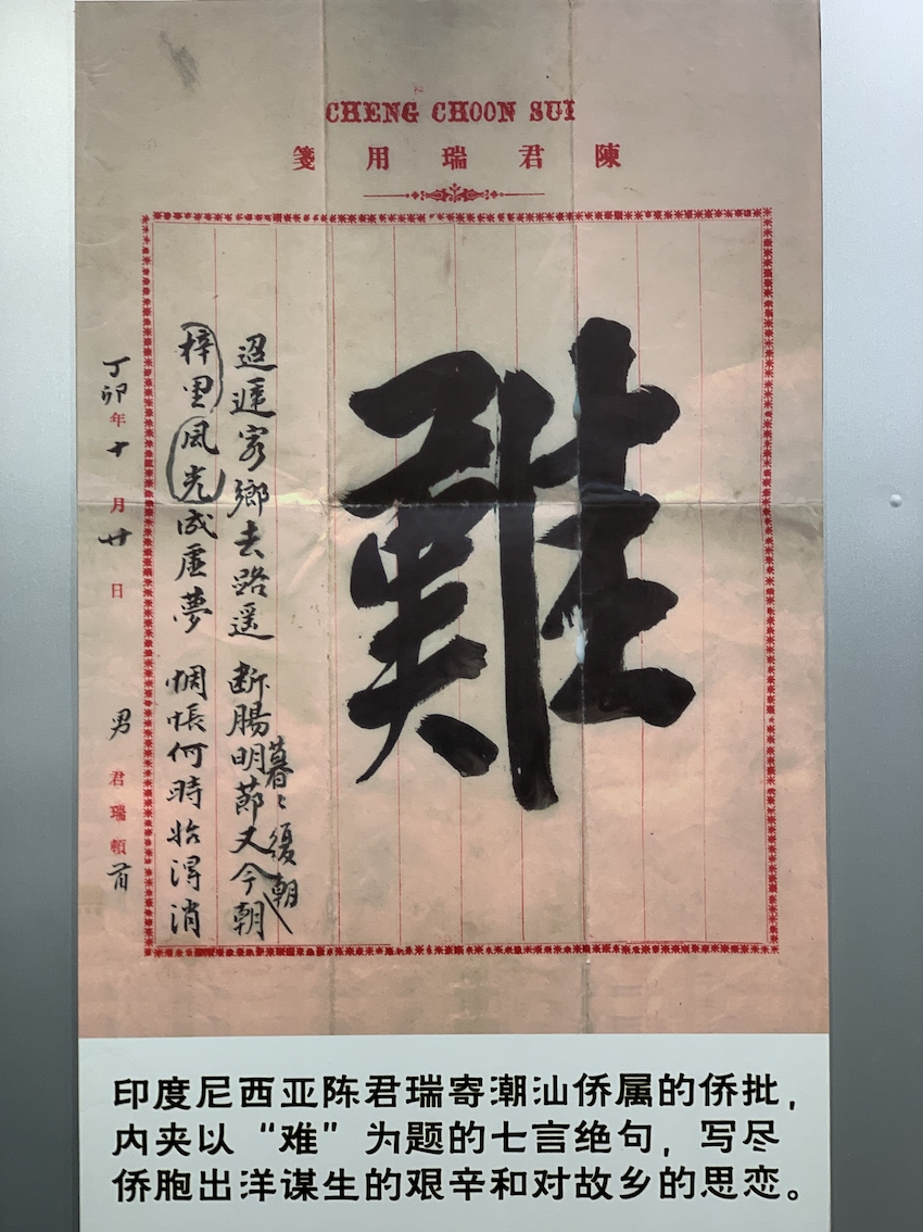 △陳列在僑批文物館有“難”字的僑批(總臺(tái)央視記者段德文拍攝)