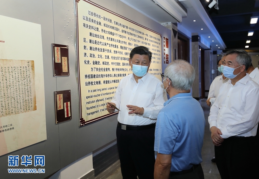 隨后,習(xí)近平參觀了具有潮汕僑鄉(xiāng)特色的僑批文物館。過去很長一段時(shí)間,海外華僑通過民間渠道將連帶家書或簡單附言的匯款憑證寄回國內(nèi),這些“僑批”成為研究近代華僑史的珍貴檔案。習(xí)近平聽取僑批歷史和潮汕華僑文化介紹。他強(qiáng)調(diào),“僑批”記載了老一輩海外僑胞艱難的創(chuàng)業(yè)史和濃厚的家國情懷,也是中華民族講信譽(yù)、守承諾的重要體現(xiàn)。要保護(hù)好這些“僑批”文物,加強(qiáng)研究,教育引導(dǎo)人們不忘近代我國經(jīng)歷的屈辱史和老一輩僑胞艱難的創(chuàng)業(yè)史,并推動全社會加強(qiáng)誠信建設(shè)。潮汕地區(qū)是我國著名僑鄉(xiāng)。汕頭經(jīng)濟(jì)特區(qū)要根據(jù)新的實(shí)際做好“僑”的文章,加強(qiáng)海外華僑工作,引導(dǎo)和激勵他們在支持和參與祖國現(xiàn)代化建設(shè)、弘揚(yáng)中華文化、促進(jìn)祖國和平統(tǒng)一、密切中外交流合作等方面發(fā)揮更大作用。