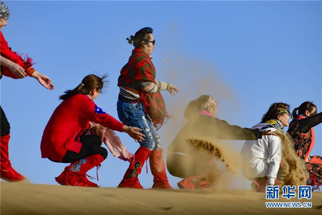 10月21日,游客在阿拉善通湖草原旅游區(qū)沙漠觀光旅游項(xiàng)目中游玩。新華社發(fā)(王正 攝)