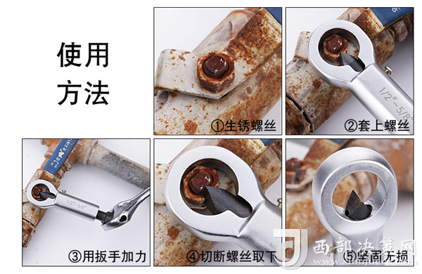 據(jù)井下工人反饋,該工具使用方法非常簡單,只需選擇孔徑合適的螺母分離器套在銹死的螺母上,然后用扳手夾禁尾部六方頭,順時針旋轉六角轉頭,使得尖刀頭切入螺母內(nèi),這時就解決了滑絲的問題,可以拆卸螺母,如果還是拆不下來,則繼續(xù)旋轉轉頭,直接把螺母切斷。