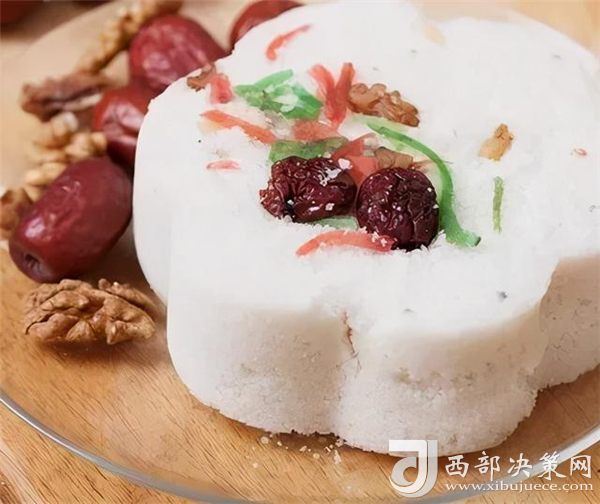 重陽(yáng)糕亦稱“花糕”,以米粉、豆粉等為原料,發(fā)酵,更點(diǎn)綴以棗、栗、杏仁等果馕、加糖蒸制而成,這樣制成的重陽(yáng)糕,香甜可口。