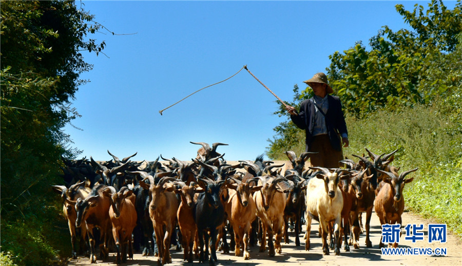 在云南省彌勒市東山鎮(zhèn)舍母村委會小橫山村,當?shù)乩蒙鷳B(tài)草場優(yōu)勢大力發(fā)展生態(tài)羊養(yǎng)殖,戶均養(yǎng)殖100多只,成為村民們的致富新手段。(10月11日攝)。新華網(wǎng)發(fā)(普佳勇 攝)