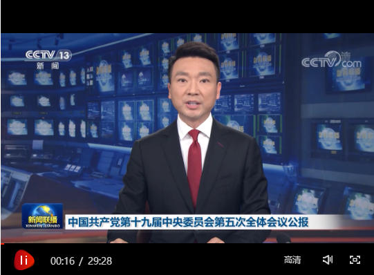 中國共產(chǎn)黨第十九屆中央委員會第五次全體會議公報