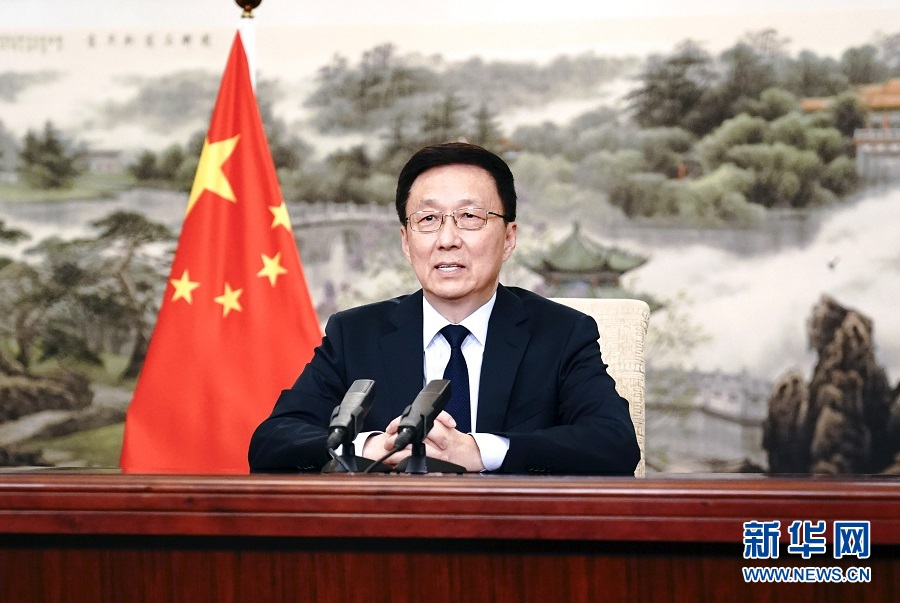 11月10日,博鰲亞洲論壇國(guó)際科技與創(chuàng)新論壇首屆大會(huì)開幕式在澳門舉行。中共中央政治局常委、國(guó)務(wù)院副總理韓正以視頻方式發(fā)表主旨演講?!⌒氯A社記者 丁林 攝